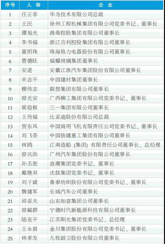 2018年度中國工業影響力人物(排名不分先后)